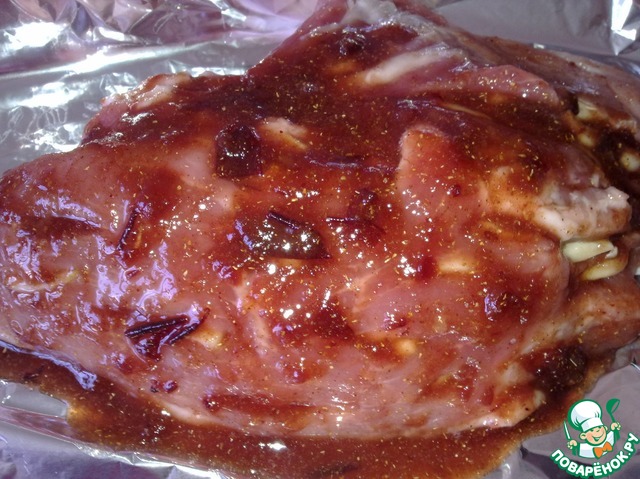 Окорок смазать этим соусом со всех сторон.