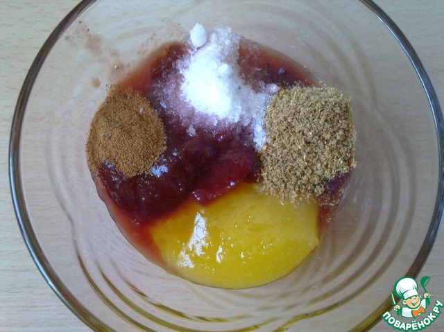 В отдельной емкости смешайте мед, сливовый соус D’arbo, соль, кориандр и корицу.