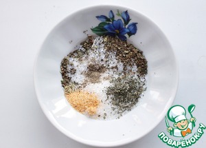 Я делала половину порции. Смешать сухие ингредиенты: сахар, чеснок, розмарин, орегано, базилик, соль и перец черный. Я соль не добавляла.