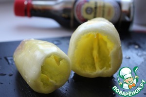 Филе промыть и обсушить бумажным полотенцем. Если используете как я перец, отрежьте плодоножку и удалите семена.