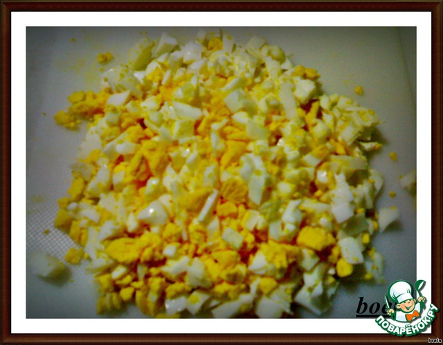 - Яйца смешать с майонезом, кефиром, содой, мукой.