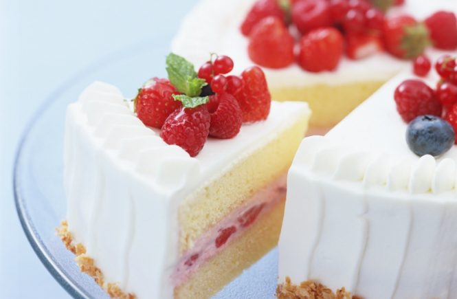 - Бисквит+суфле. Торт получается свежим, не сладким, нежным и оригинальным. В зависимости от собственных предпочтений вы можете выбрать вид фруктов или ягод для его приготовления. Оптимальными считают вишню, малину, клубнику и персик. Эти плоды обладают приятной кислинкой, которая будет очень кстати в летнем десерте.