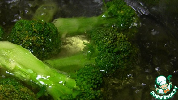 Брокколи разобрать на соцветия и варить в кипящей воде пять минут.