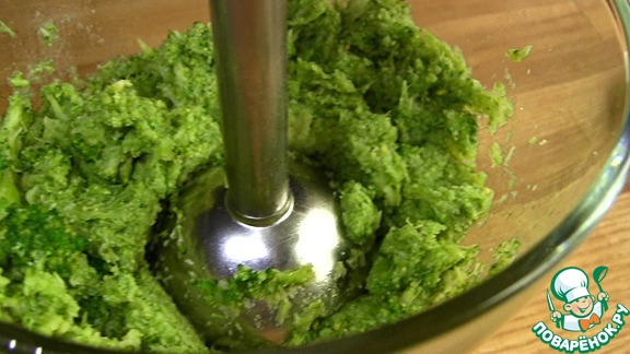 - Брокколи нужно разморозить, и измельчить при помощи блендера, или мелко нарезать ножом.
