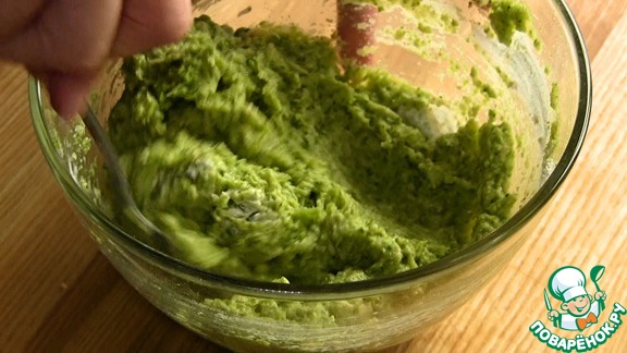 - Добавьте пюре из брокколи и замесите однородное тесто.