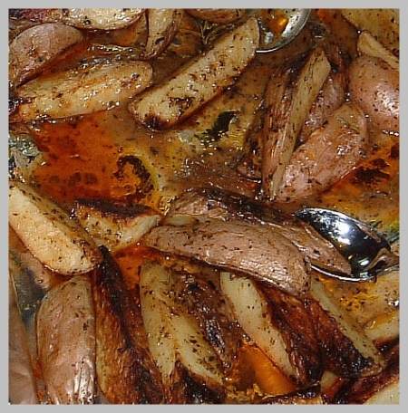 После этого картофель хорошо смажем приготовленным соусом и запечем в заранее разогретой до 180 градусов духовке. Запечем до готовности картофеля.