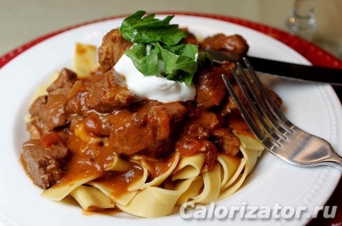 Чтобы приготовить гуляш с макаронами, нам понадобится: