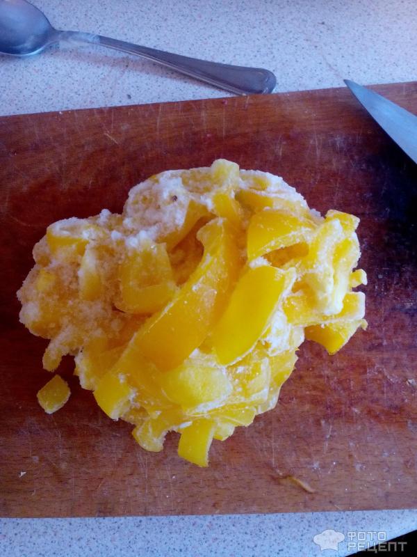 Добавляем мелко нарезанный 1 сладкий перец. Перемешиваем.