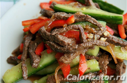 Пищевая ценность блюда «Огурцы с мясом по-корейски» (на 100 грамм ):