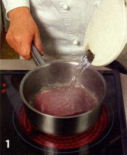 - Мясо варим в слегка подсоленной воде до готовности (около часа). Для того, чтобы придать мясу необычный вкусовой оттенок в воду киньте несколько горошинок черного перца, лавр или сушеную гвоздику.