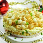 6. Четвертый слой: пшеничные сухарики, сверху майонез.